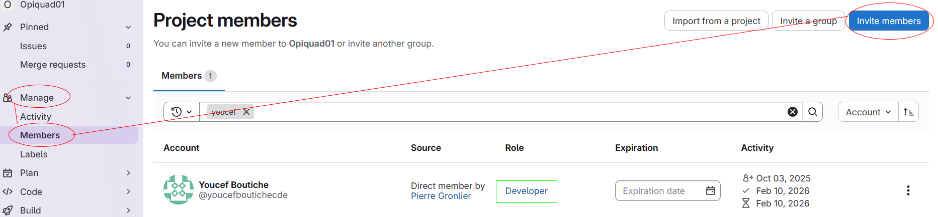 Manage > Members.